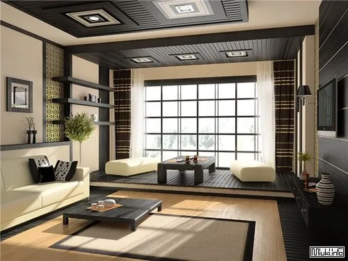 Японский стиль отличается безупречными цветовыми сочетаниями и лаконичными формами. Это минималистско-декоративный стиль, в котором ничто не перегружает внимание, пространство структурировано спокойно и внятно. В территориально небольшой, перенаселенной стране особо ценится пространство, почему и внутреннее устройство помещений сводит на минимум мебель и прочие привычные атрибуты дома, с тем чтобы компенсировать его дефицит. У японцев особое отношение к природе, поэтому японский стиль ассоциируется с природными цветами, преимущественно в светлой гамме: оттенки бежевого, белый, кремовый, молочный. Сдержанные светлые тона характерны и для японской мебели. Поверхность мебели и стен гладкая, нефактурная. Ткани тоже кремовые и белые, преимущественно натуральные: хлопок и шелк. В Стране восходящего солнца место для отдыха располагается в центре комнаты.